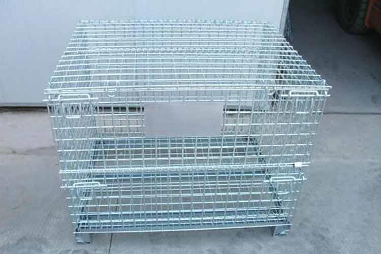 带盖蝴蝶笼具有牢固的插销结构构,既可以使蝴蝶笼在储物堆叠时关扣,又能够使各种不同状态下顺利开关,以储放物料。带盖蝴蝶笼的设计是为了随时存取货物提供了方便,在堆叠存储时,可以随时打开小门存入或取出物品,免除翻仓的麻烦;并且配合叉车、升降机、吊车等设备可进行作业。